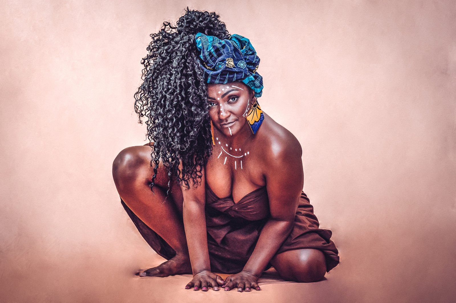 Ela tem 37 anos, mora em São Vicente e é Fisioterapeuta especializada em Saúde do Idoso. “Aceitei participar deste projeto, primeiramente porque seria um desafio muito grande pra mim, já que eu nunca fotografei assim na minha vida. Em segundo lugar porque me apaixonei pelo projeto, valorizar nossas raízes africanas é homenagear nossa ancestralidade. Homenagear nosso povo, nossa cultura, é lindo!!! Somos descendentes de reis e rainhas, guerreiros e guerreiras, amantes da terra, conectados com a energia da natureza. E participar deste projeto, pra mim, é resgatar toda esta história que está tatuada em nosso DNA.” (Daniela Fonseca)